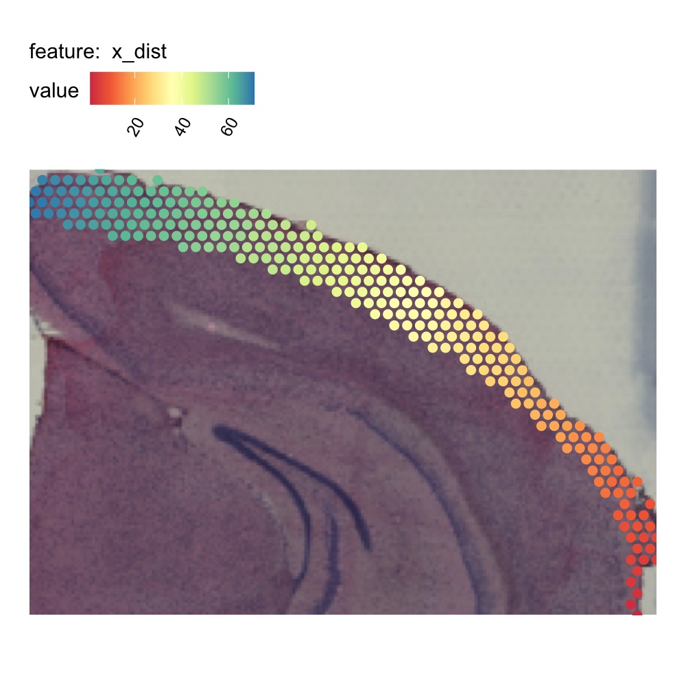 MapFeatures(se_mbrain_subset, features = "x_dist", image_use = "raw",