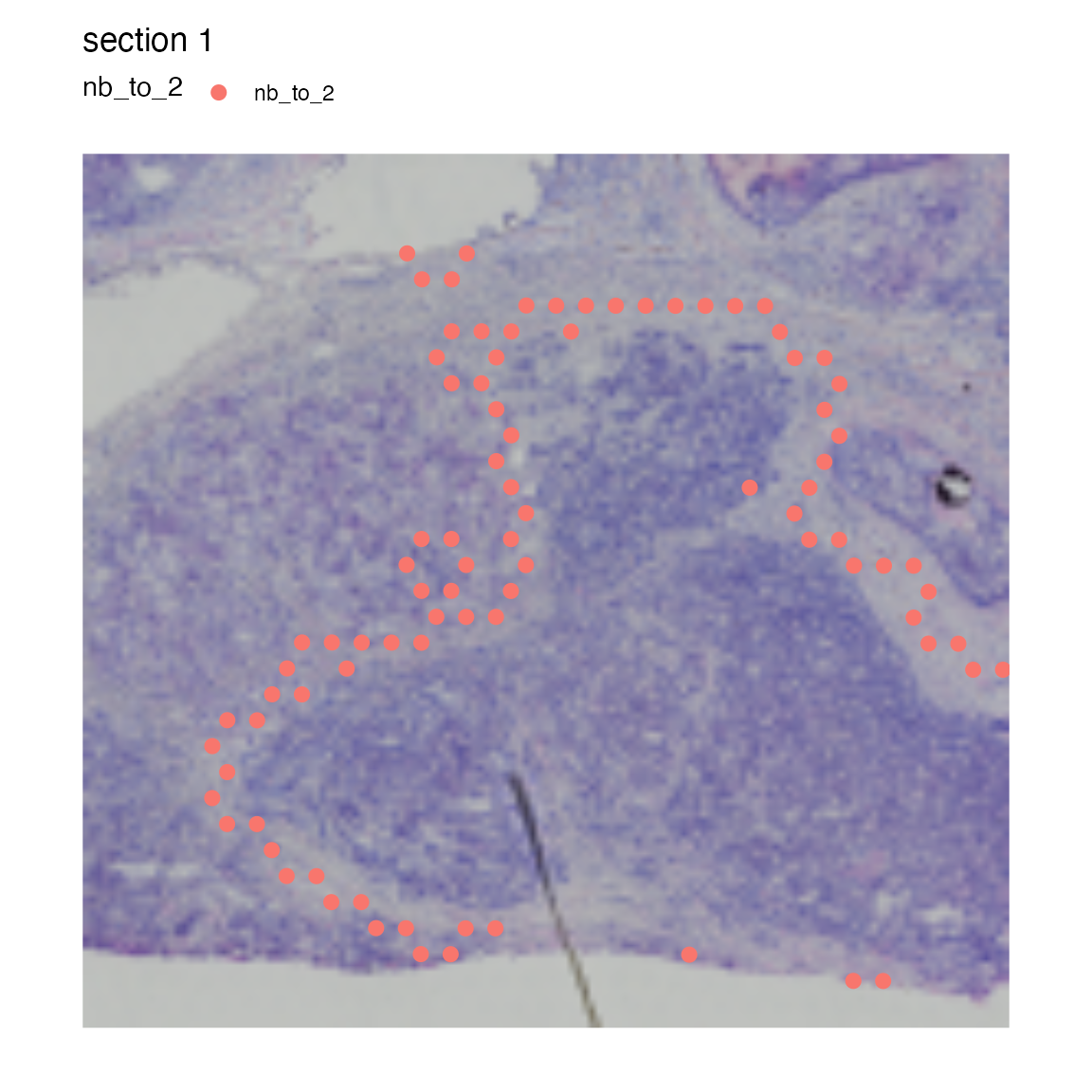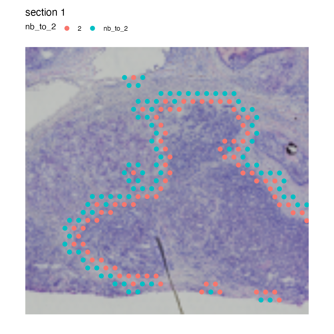 column_labels = "2", mode = "inner_outer")## ℹ Finding neighboring spots for '2'