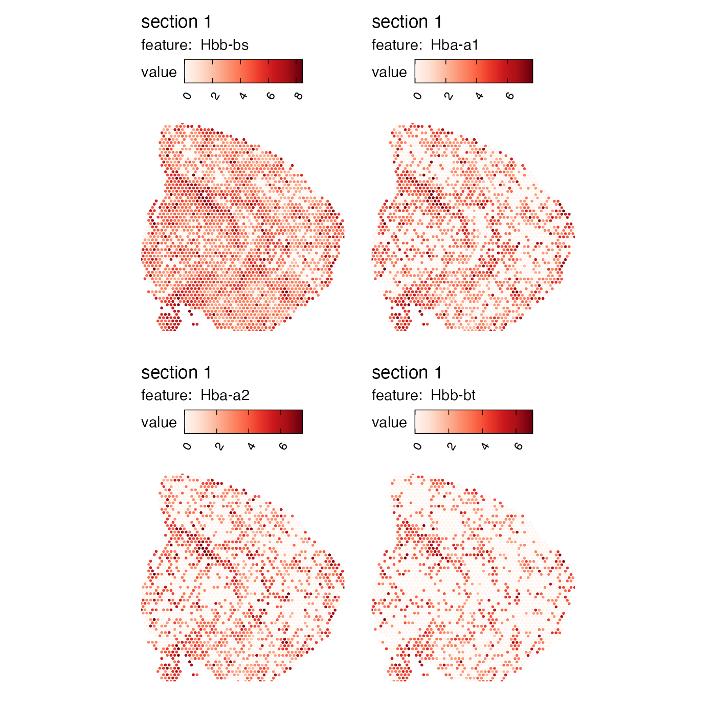 which(VariableFeatures(se_mbrain) %in% hemoglobin_genes)## [1] 1 2 3 4