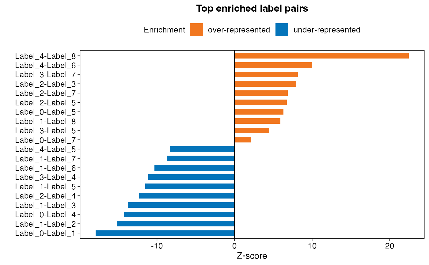 labs(x="", y="Z-score", title="Top enriched label pairs", fill="Enrichment") +