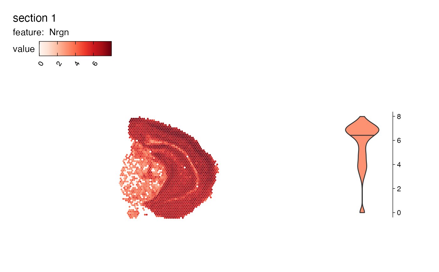 distribution of the selected feature next to the spatial feature plot.