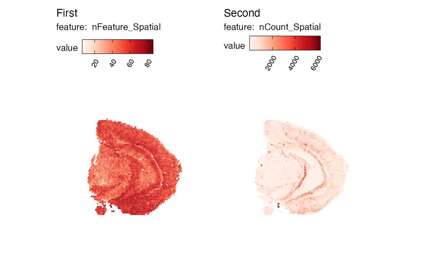 p <- MapFeatures(se_mbrain, c("nFeature_Spatial", "nCount_Spatial"))