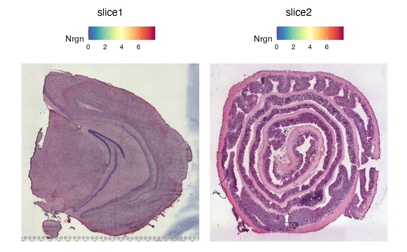 SpatialFeaturePlot(se_merged, features = "Nrgn")
