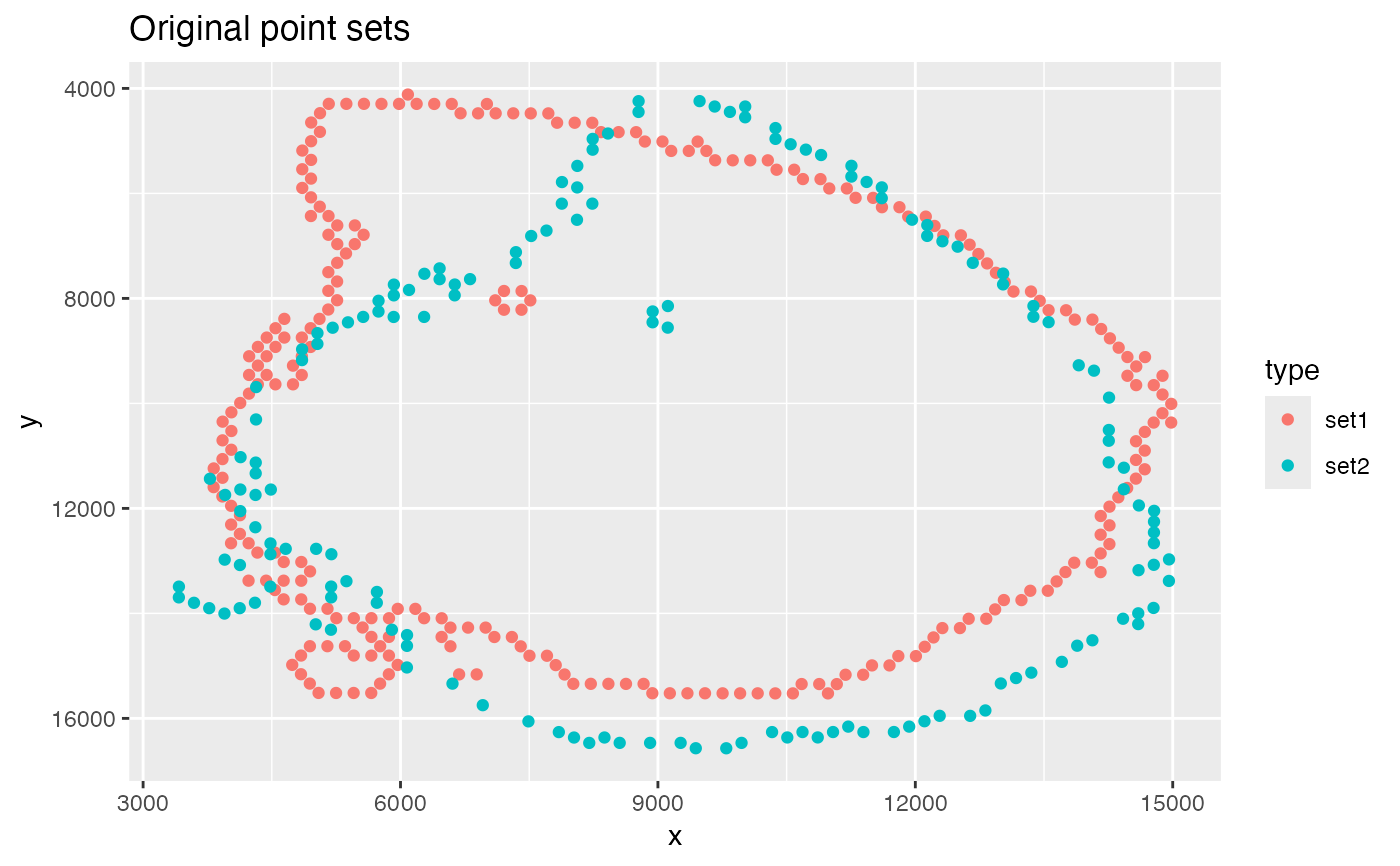 icp.RdAligns two sets of unpaired point sets by applying rotations and translations. The point sets can be of unequal length.