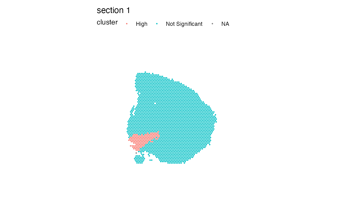 #> ℹ G scores will be named Gi[Ftr] and adjusted p-values will be named Pr(z > E(Gi[Ftr]))